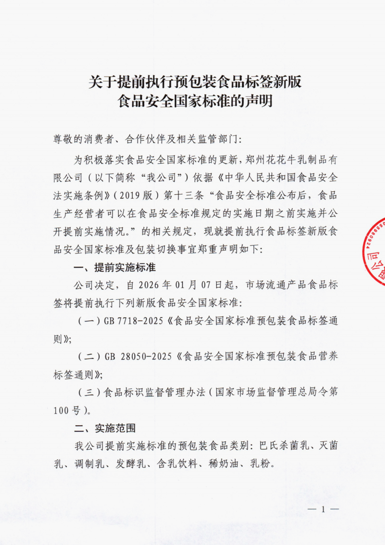關(guān)于提前執(zhí)行預(yù)包裝食品標(biāo)簽新版食品安全國(guó)家標(biāo)準(zhǔn)的聲明